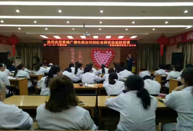 今年是第107个“三八”国际劳动妇女节,为全面贯彻党的妇女政策,丰富我院职工文化生活,充分发挥女性在工作、社会、家庭的半边天作用,3月7日下午,院工会特邀请晋城广播电视台司剑虹老师在我院开展“弘扬传统文化 争做知性女人”专题讲座。参加此次讲座的有院长薛琴芹、副院长高俊华、工会主席郭晋霞、各科主任、职工等共70余名医务工作者。