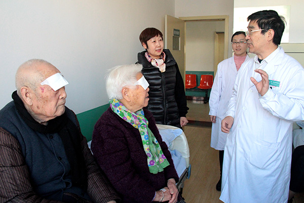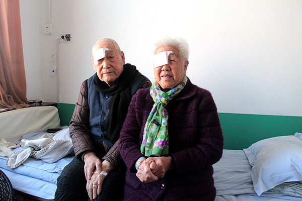 爷爷今年92岁,奶奶86岁,俩人患白内障多年,视力严重退减,有时还出现眩光感,严重影响了晚年生活,这才来我院进行手术治疗。今天术后第一天,两位老人视力均恢复到了0.8。