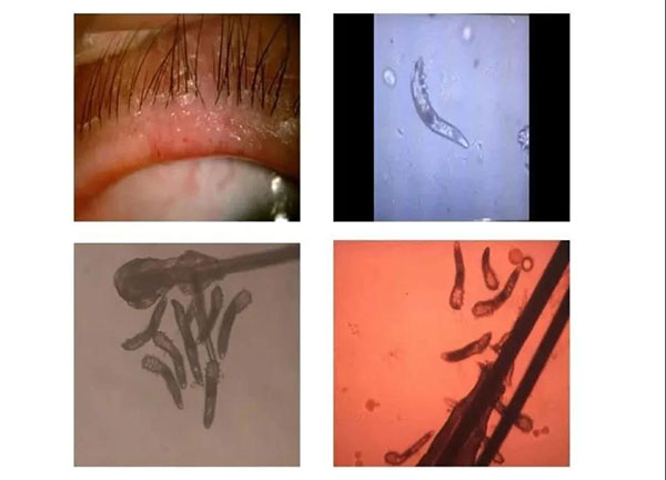 如螨虫侵袭眼睛,它们钻入睫毛毛囊,叮咬局部组织引发炎症、其代谢物堵塞睑板腺管,影响睑板腺正常分泌功能,脂质分泌不足从而引发干眼症状。
