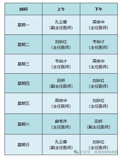 晋城市眼科医院最新专家门诊排班表,请查收!